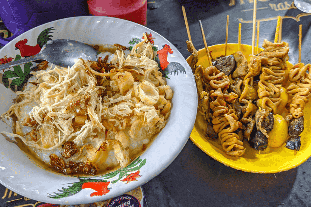 - Bubur Ayam Jakarta, dikenal dengan kuah kuning gurih dan topping melimpah.